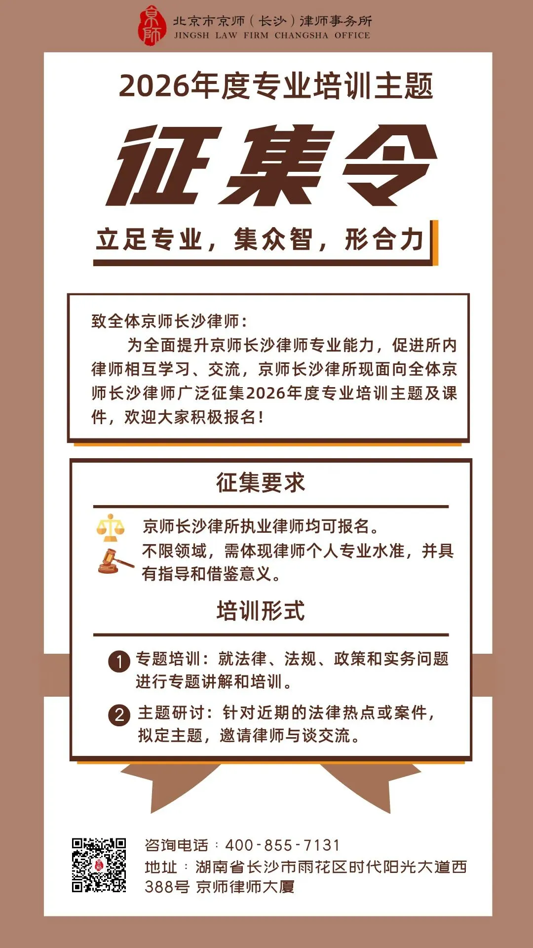 >北京市京师(长沙)律师事务所2026年度专业培训主题征集令!