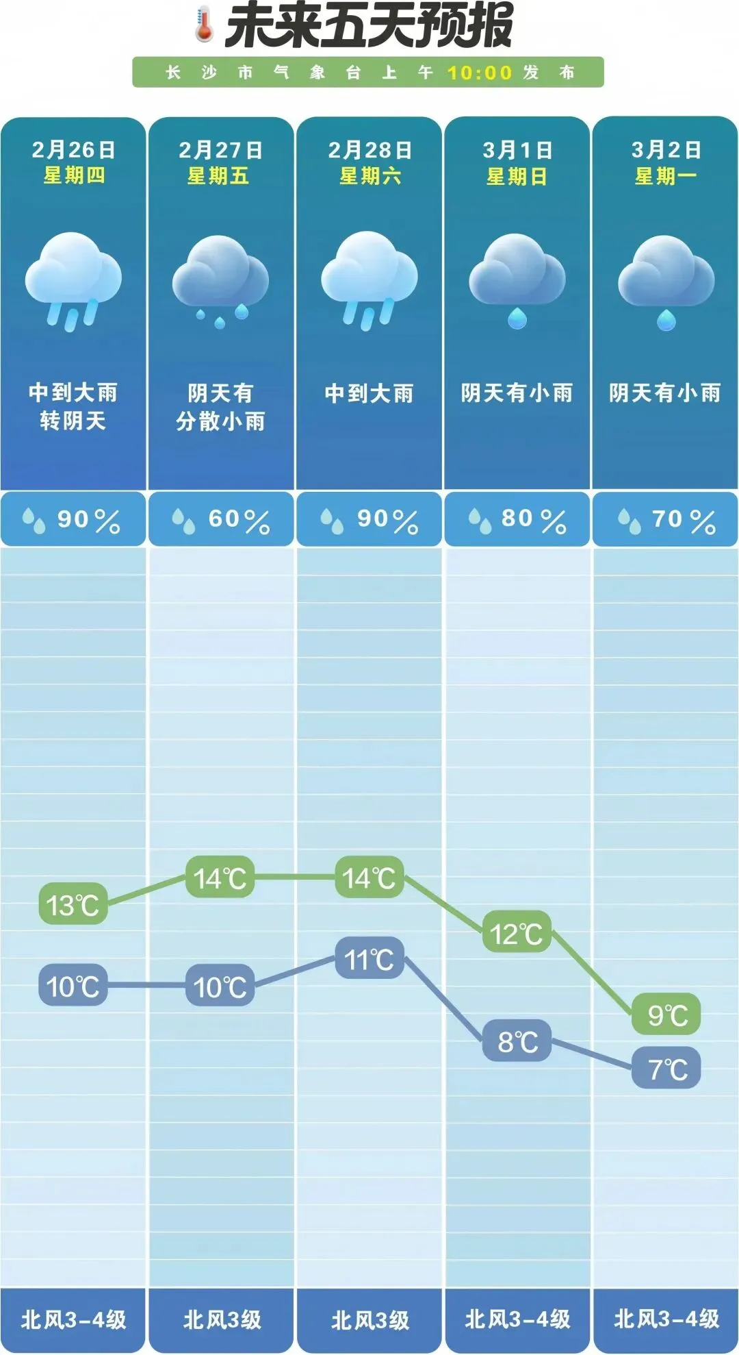 未来一周长沙降雨频繁
