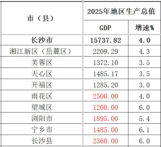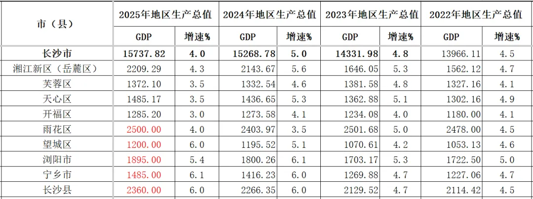 长沙市2025年各区县市GDP汇总,三县市包揽中部前三,所有区县均超千亿