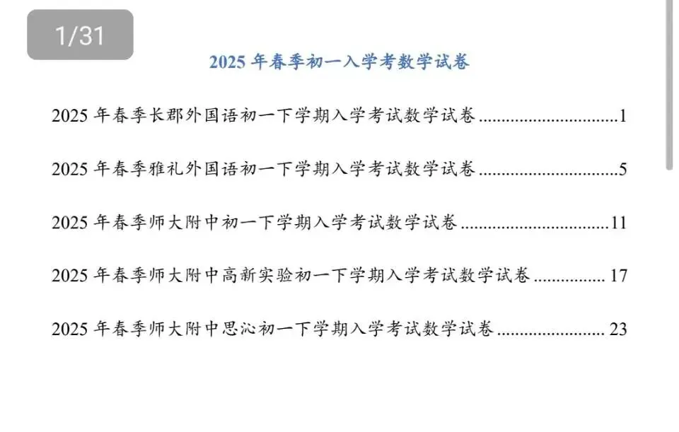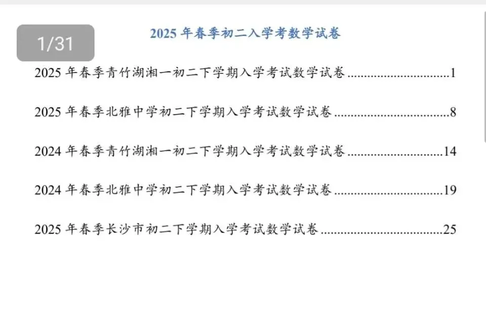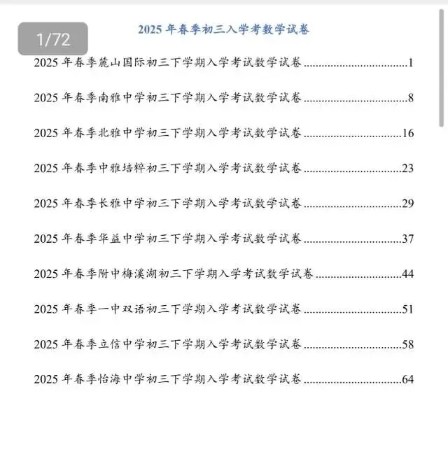 >2025年长沙春季部分初中学校入学考试(数学)