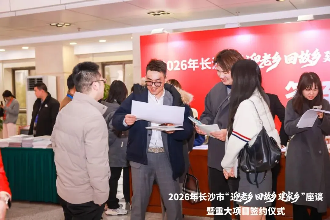 “新年好呀”“新年快乐,恭喜发财”……老朋友、新面孔,乡音未改,笑意盈盈,2月25日下午,2026年长沙市“迎老乡 回故乡 建家乡”座谈暨重大项目签约仪式举行,一场延续12年的“春天的约会”,再一次如约而至。