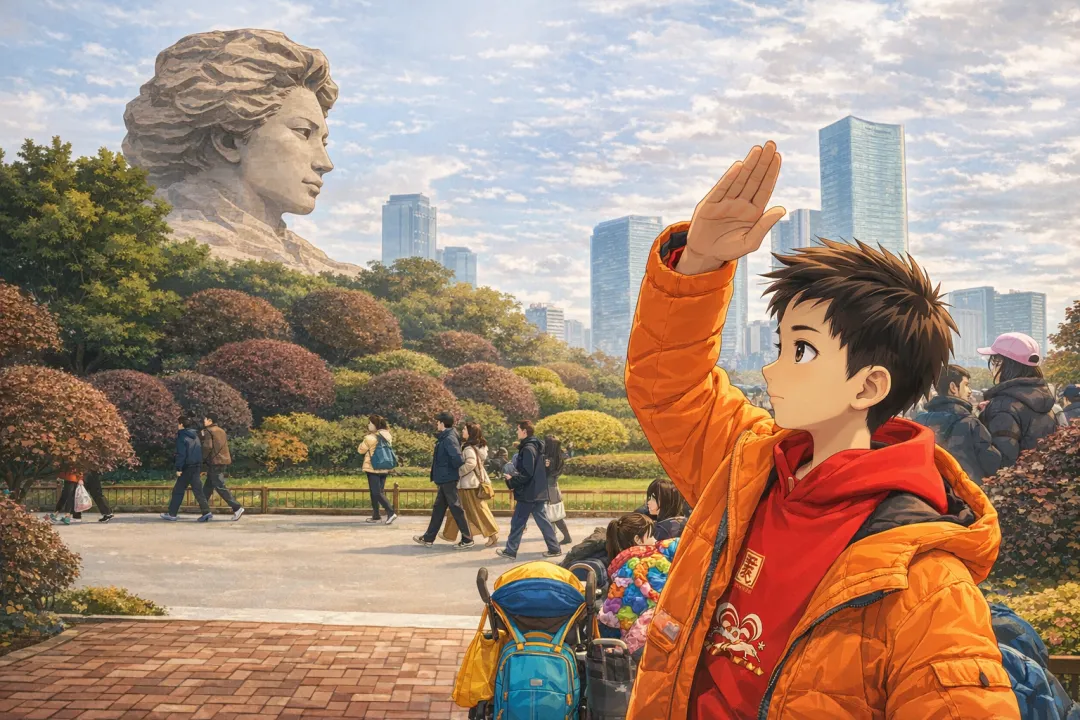 “爸爸,这个毛爷爷的塑像跟我们平常见到的不一样呢?”