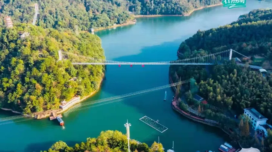 「天空之镜」:位于亚热带森林乐园区域,超大号玻璃观景平台,惊艳亮相,湖上之岛,天空澄澈,无需滤镜,自带仙气,湖南省最大的玻璃观景平台来了;