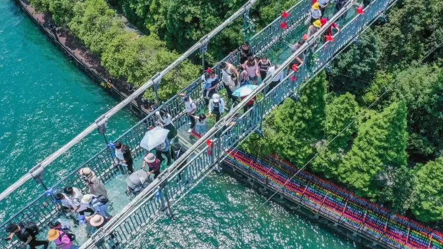 「天空玻璃廊桥」:全长200米左右,高100米左右,宽2.5米,360度无死角,高山、丛林之美能尽收眼底,山水环绕,恍若人间仙境!
