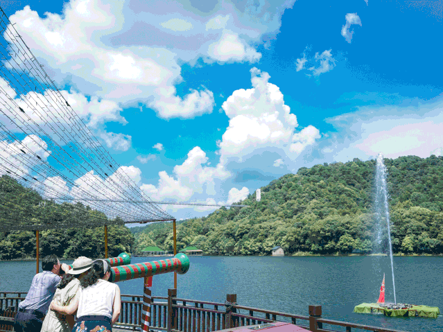 「金龟岛揽胜」:观音庙祈福、万福万寿塔登高、摸五子登科树、许愿金龟池、踏通天响鼓梯湖南省内唯一透明玻璃厕所。