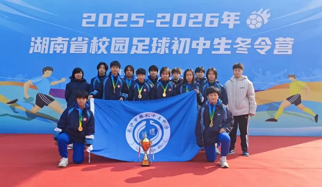 在2月2日至8日于湖南省体育职业技术学院举行的2025-2026年湖南省校园足球初中生冬令营中,十五中女足严格遵守纪律,积极参与战术讲座、外教示范课、专项训练及多场教学比赛,展现出良好的足球素养、团队协作精神和积极的学习态度。他们在训练中认真刻苦,代表长沙不畏强手、敢打敢拼,最终勇夺全省第一名!