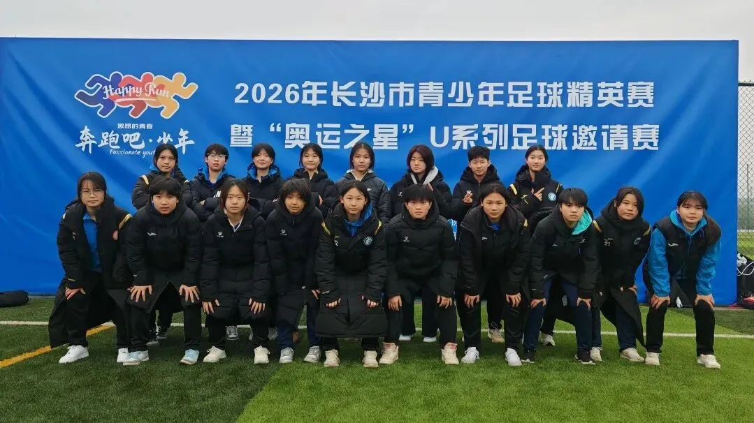 在1月24日至2月13日举行的2026年长沙市青少年足球精英赛中,我校高中女足队在最后一场比赛中顽强战胜宁乡一中,为本次征程画下圆满句号。本次比赛队伍整体取得第四名的成绩,展现了训练成效与竞技状态的稳步提升。