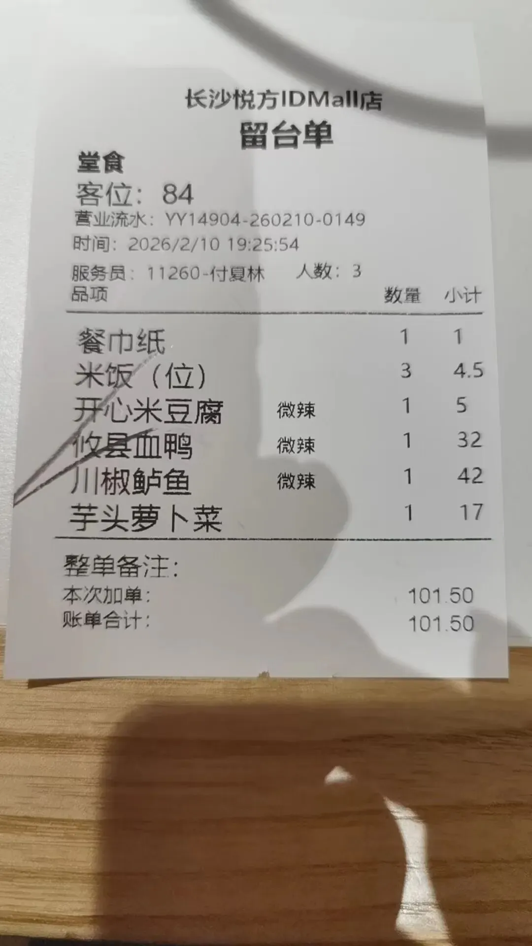 走出商场时已经八点二十分,坡子街依然人声鼎沸。回头看看“悦方ID MALL”的招牌,想起它名字的寓意:“愉悦之地,精彩世界”。今晚这顿饭,倒是把“愉悦”二字吃得明明白白——三十二元的血鸭、四十二元的鲈鱼、十七元的萝卜菜、五元的米豆腐,加起来不过百来块钱,却吃出了一桌子的满足。