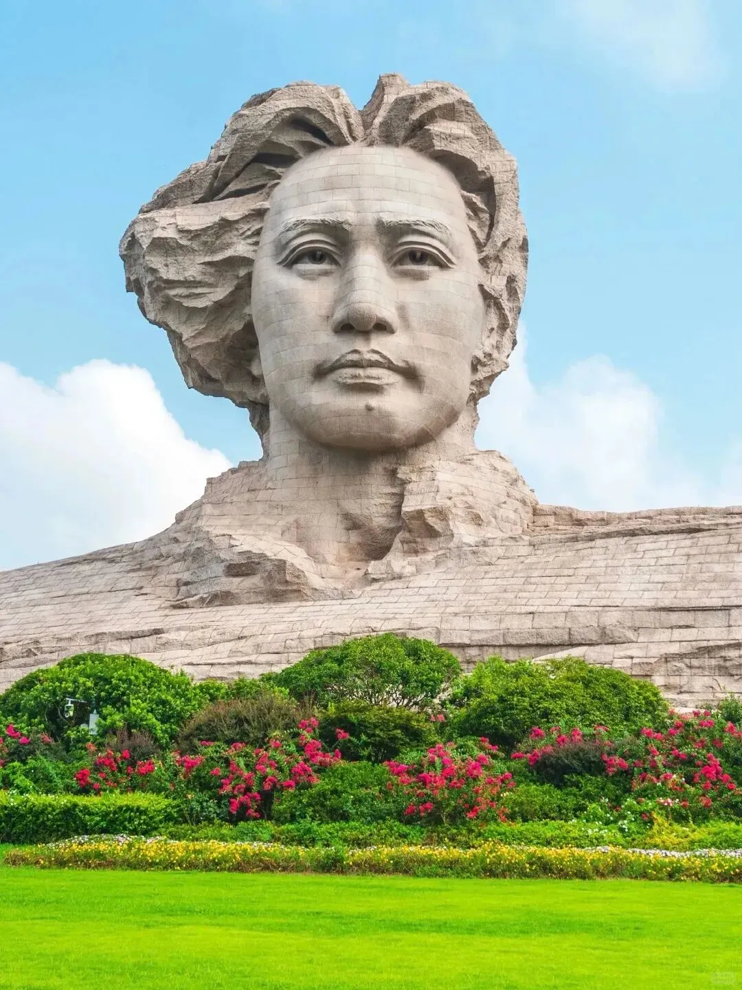 清晨7点前入园避开人流高峰,日落时分(17:30-18:30)的逆光拍摄,让雕像与湘江晚霞相映,氛围感拉满。