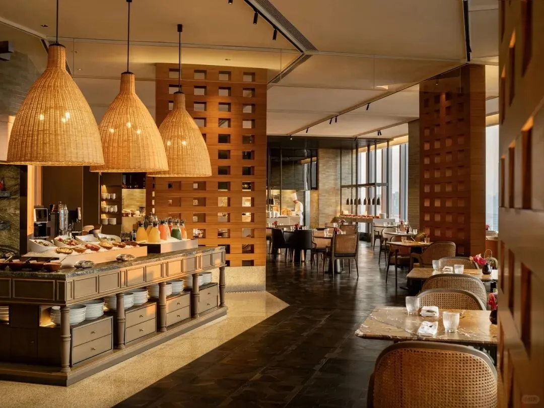 酒店拥有米其林推荐餐厅“悦廊”与高空酒吧“吧93”,可品尝融合湘菜与西式料理的创意餐点,夜晚在酒吧小酌,看湘江两岸灯火璀璨,将星城的潮流与浪漫一网打尽。