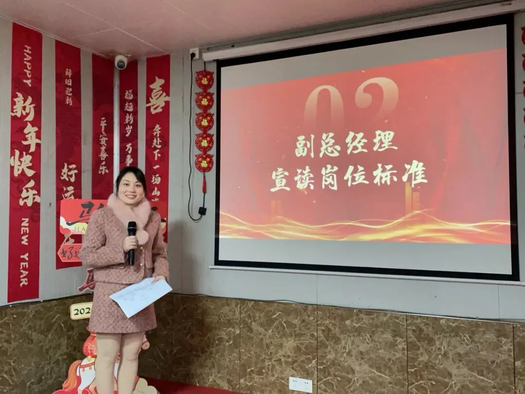 副总经理卢小琴女士在会议中宣读 18 个工作岗位的标准化细则,紧扣 “深耕服务” 核心要求,从岗位职责、服务规范、工作流程到考核标准进行全面明确。此举旨在以清晰的岗位标准划定工作边界、规范服务行为,让每一项工作有章可循,每一次服务有规可依,为提升团队专业度、筑牢服务根基、携手开拓新局提供坚实的制度保障。
