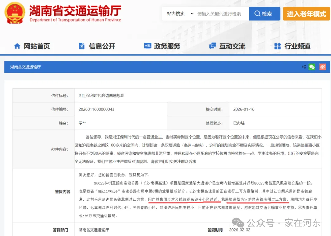 长沙南横高速过江大桥,得到长沙市交通运输局的回复: