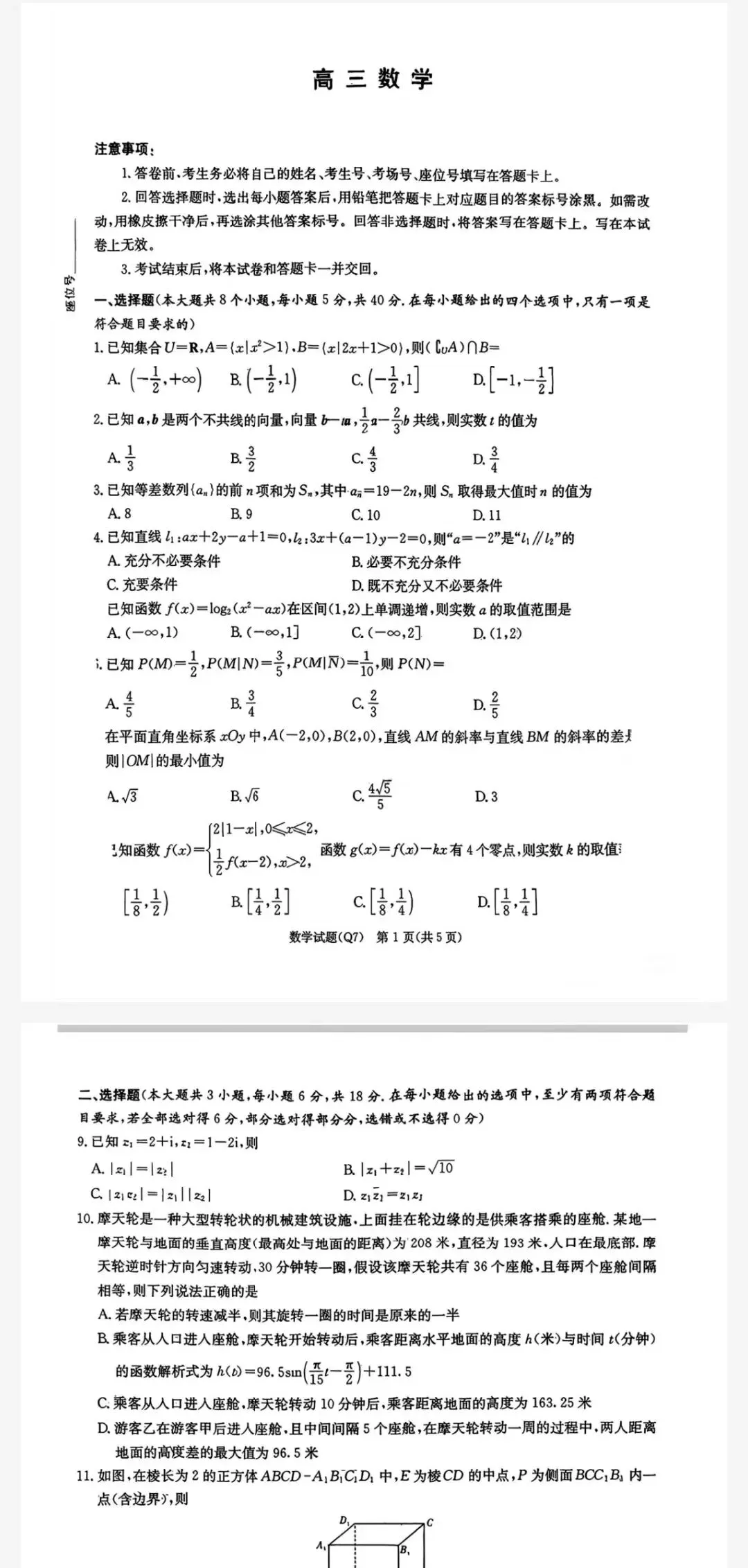 长沙市第一中学2026届高三月考试卷七及参考答案