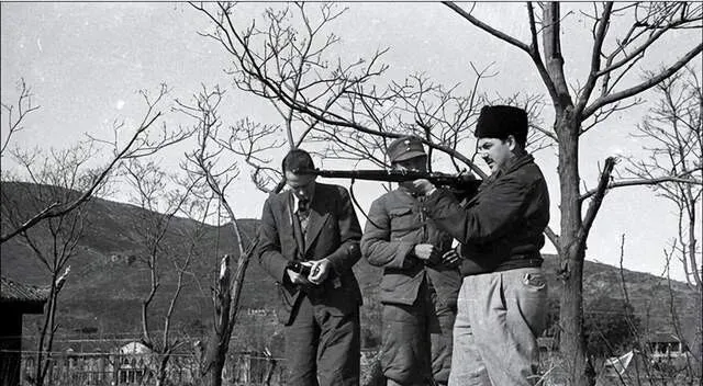 图中这杆长枪叫栓动步枪,木质枪托乌亮乌亮的,冷铁枪管细长,刺刀卡榫在口,扣机护圈发亮,旁边那顶黑毛皮帽一看就保暖结实,风一吹不打颤,照片里三个人站在果木树下,山影压着村篱,持枪的人比画着瞄准,旁边的人低头捣鼓盒子相机,像是在比对口令也像在校准焦距,那个年代能在前线把枪端稳,把快门按准,就已经是硬气的合作了。