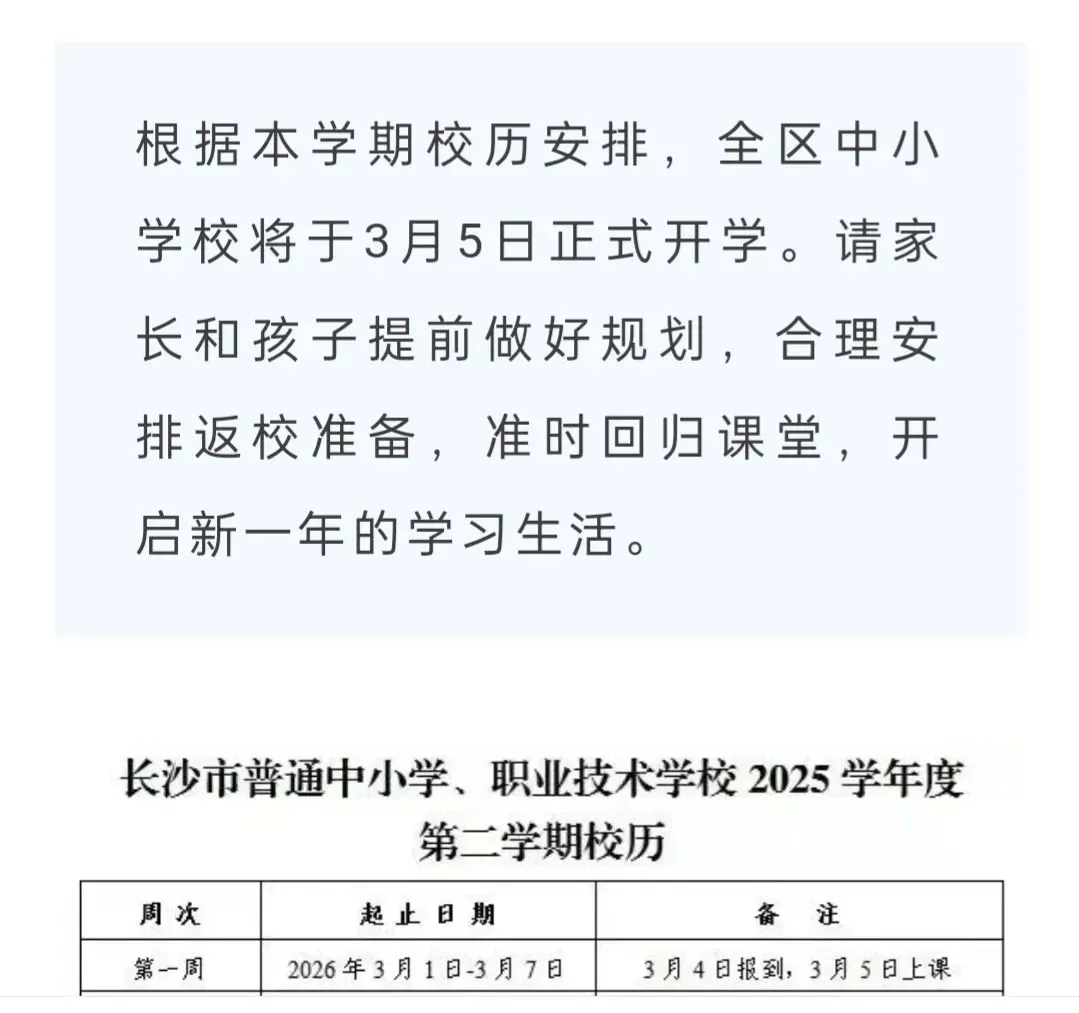 今年元宵节3月3日(星期二),长沙中小学3月4日(星期三)报道,3月5日(星期四)正式开学——先闹元宵,再收心上学,堪称史上最温柔安排。
