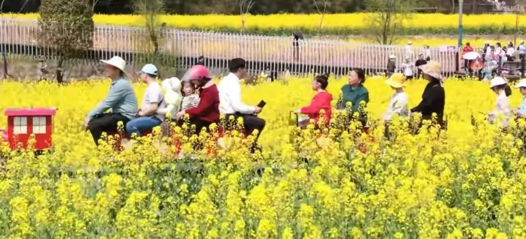为提升游客体验,福临镇新增了儿童游乐设施并已开放,适合家庭亲子出游。景区还强调“包好玩”的主题,融合自然风光与休闲娱乐,提供一站式春游服务。(下图为浏览小火车)