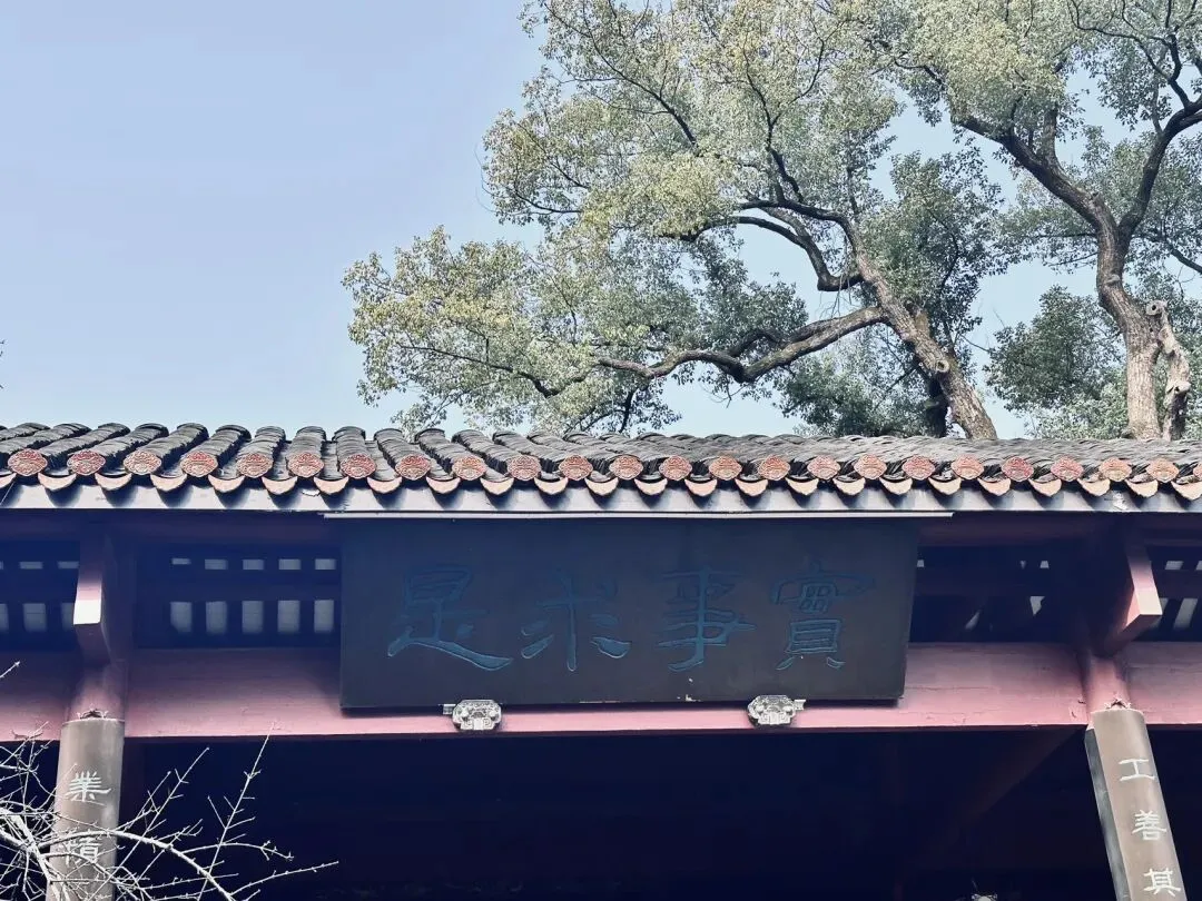千年学脉绵延至今,白墙黛瓦间,“实事求是”的匾额静静矗立,墨香与书香交织,仿佛能听见先贤讲学的余音。