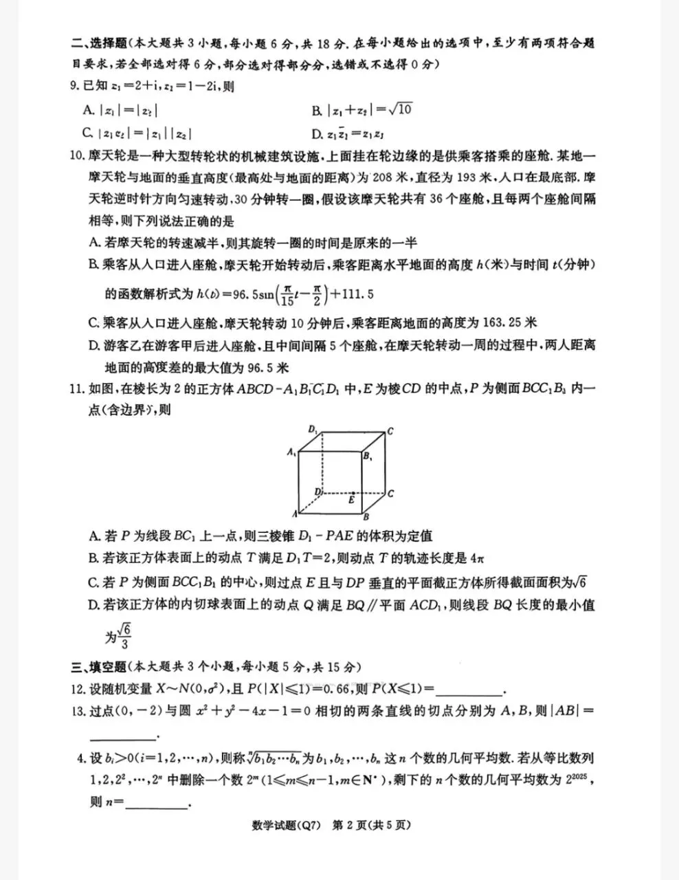 今日分享:长沙市一中2026届高三月考试卷七试卷答案