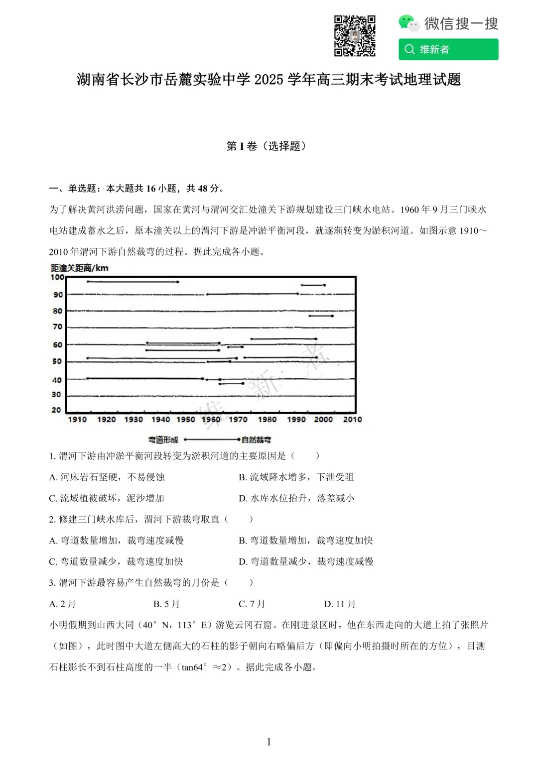 维新者致力于收集和整理各大名校试题,帮助您省心省力获取各类优质的试卷与教辅资源。我们这次带来的是湖南省长沙市岳麓实验中学2025学年高三期末考试地理试题及答案,希望能够有助于您孩子的学习。