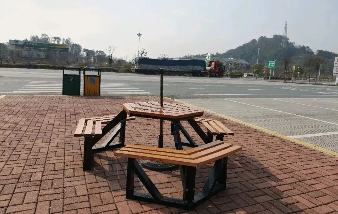 在去往长沙的途中,我们途经了一个名为江背的服务区。刚下车,便被它干净敞亮的开阔环境所吸引,瞬间就觉得,这是一处特别适合驻足歇脚、放松身心的好地方。抬眼望去,“江背” 两个大字醒目而立,前方的空坪上,一套设计别致的桌椅静静摆放着,宛如一位热情的东道主,正笑意盈盈地招呼着往来游子,邀人落座歇息片刻。