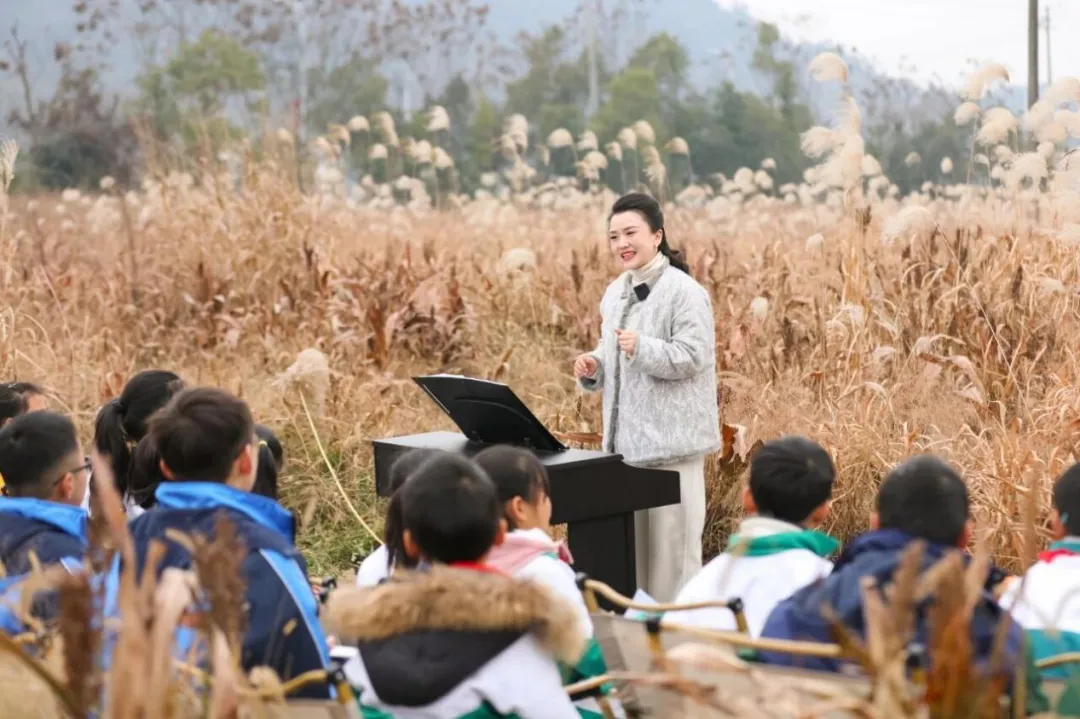 白箬铺镇的美育课搬进芦苇荡、樱花树下,孩子们的画作沿着乡间道路展出,是“乡土+艺术”的碰撞;