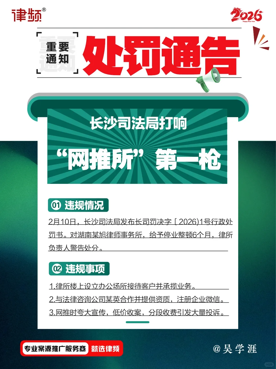 长沙打响网推所整顿第一枪,网推所被停业6个月,律所负责人被警告处分
