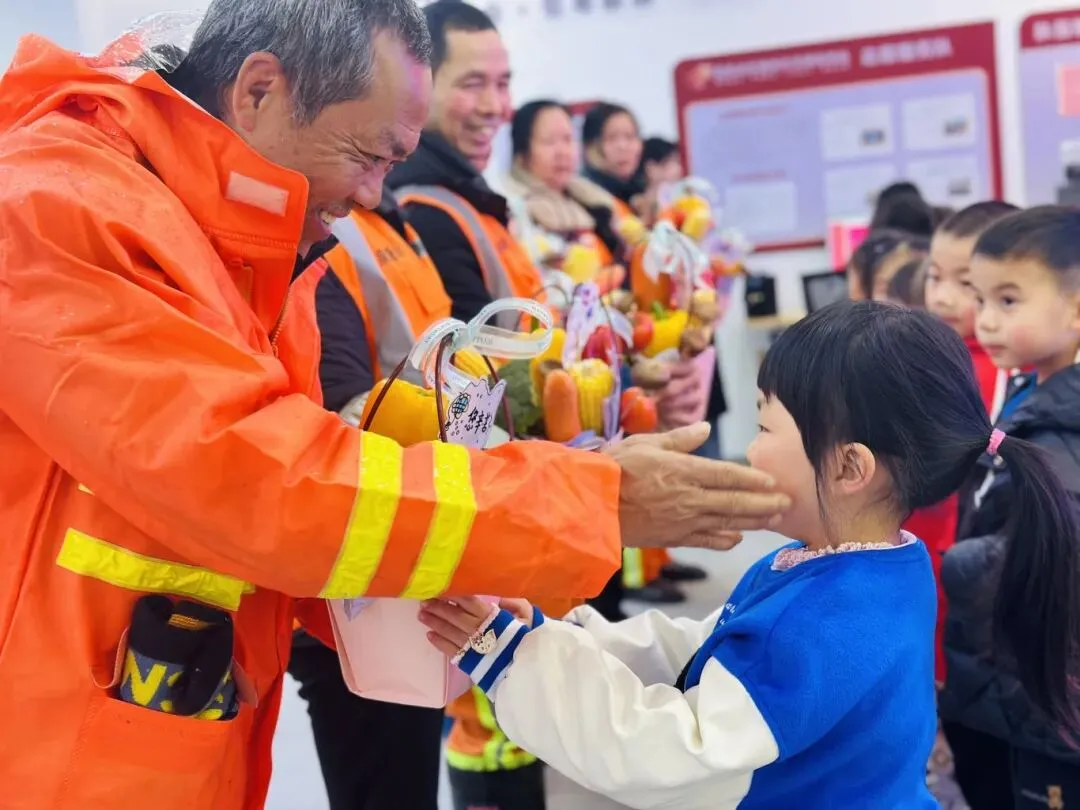 泉塘街道泉东社区在党群服务中心开展“萌娃学雷锋 情暖环卫工”活动。