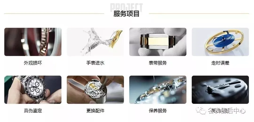 手表进水、手表受潮、手表走快、手表走慢、手表偷停、手表不走、机芯生锈、表盘生锈、表壳生锈、夜光失效、报时故障、手表受磁、后盖松动、电路故障、返厂服务