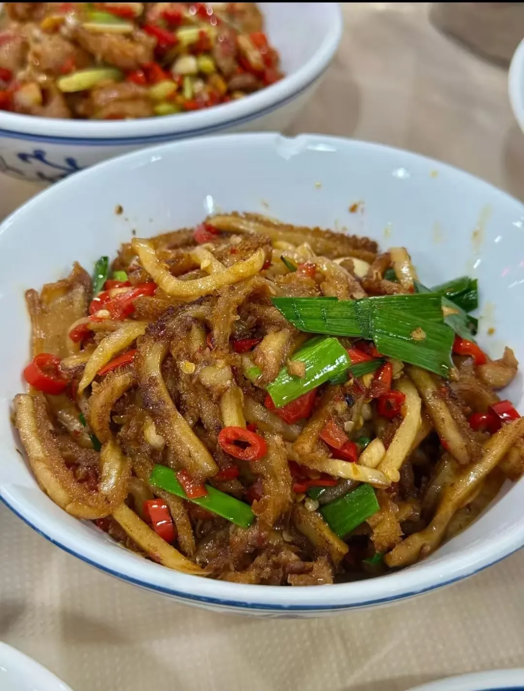 推荐:可以点几个凉菜+一个猪油粉,凉菜里面蒜苗好好吃!!!严格来说是家菜馆,但凉菜和猪油粉太出圈了。蒜苗是必点,脆嫩清甜,拌上辣椒油,开胃又解腻。猪油粉简单但香,猪油和酱油的搭配,永远的神。