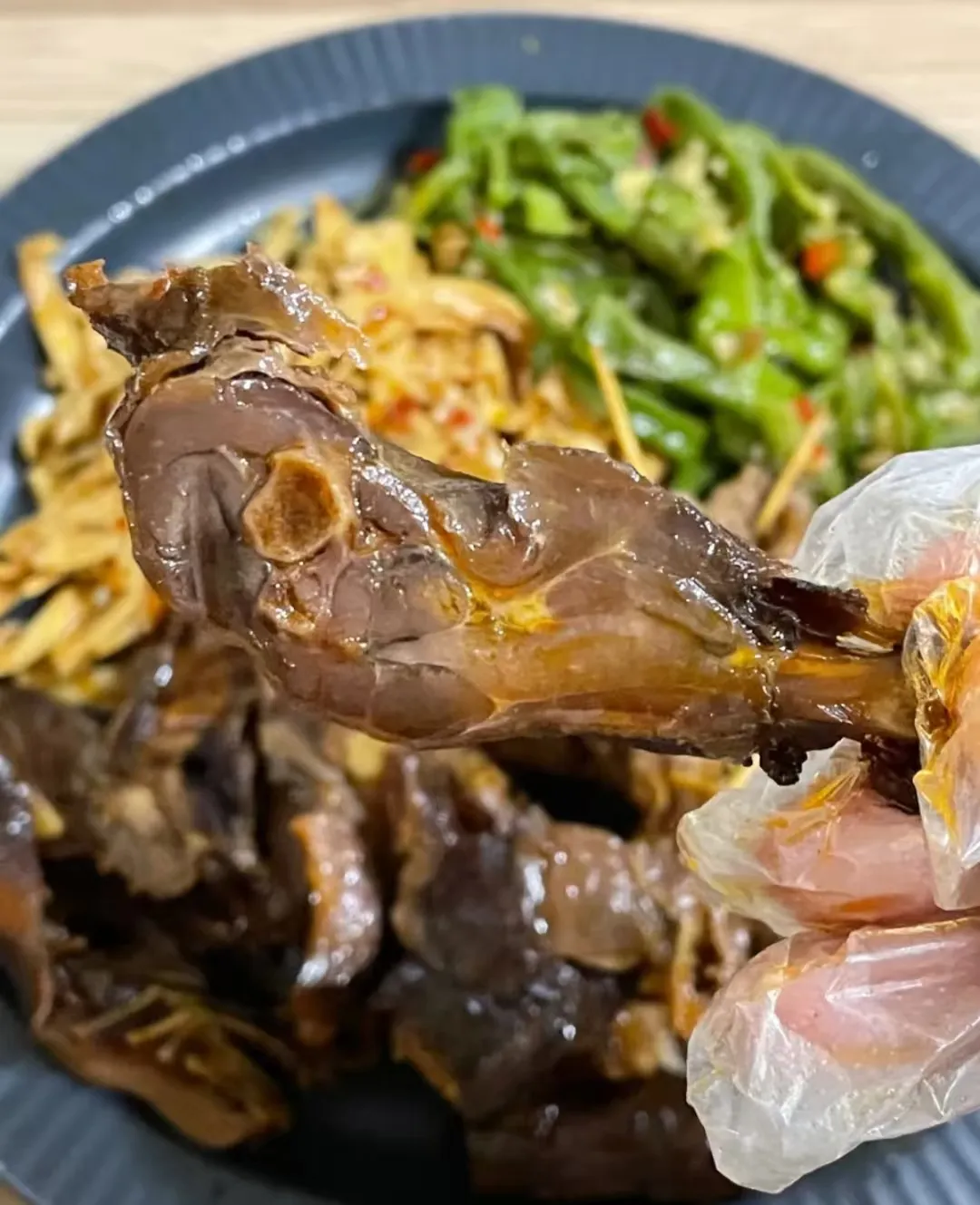 推荐:酱板鸭+卤味、大概率吃疯,长沙人民心头爱酱板鸭是招牌,越嚼越香,辣得恰到好处。各种卤味也不错,鸭脖、鸭翅、豆干……追剧的时候啃着吃,根本停不下来。