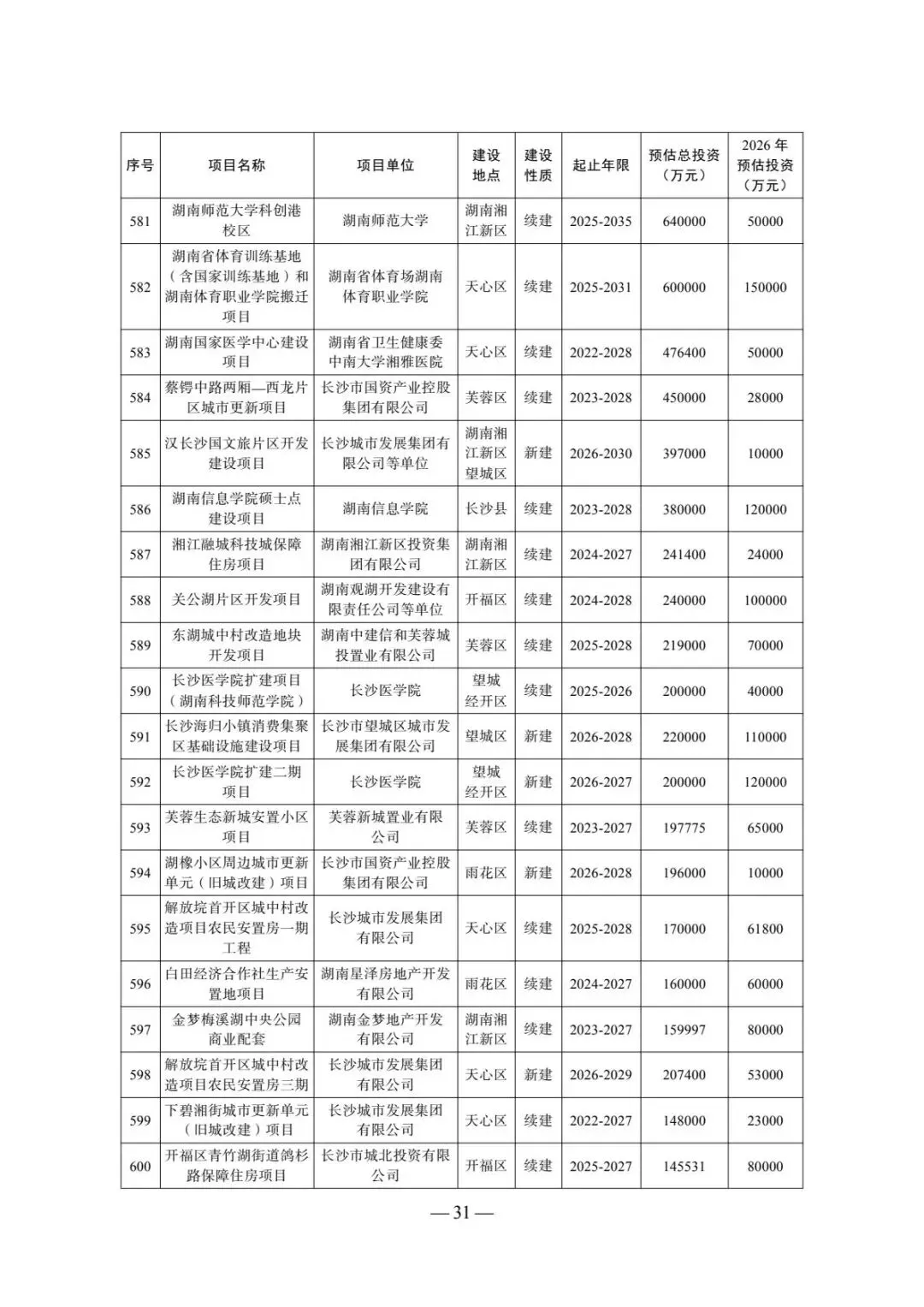 为深入贯彻党的二十大和二十届历次全会及中央、省委、市委经济工作会议精神,按照市委提出的“六个统筹”要求,围绕“3+3+5”工作重点,锚定“三高四新”美好蓝图,充分发挥重点建设项目对全市扩内需、稳投资、优结构的支撑作用,市发展改革委牵头编制了长沙市2026年重点建设项目清单,已经市委、市人民政府审定。