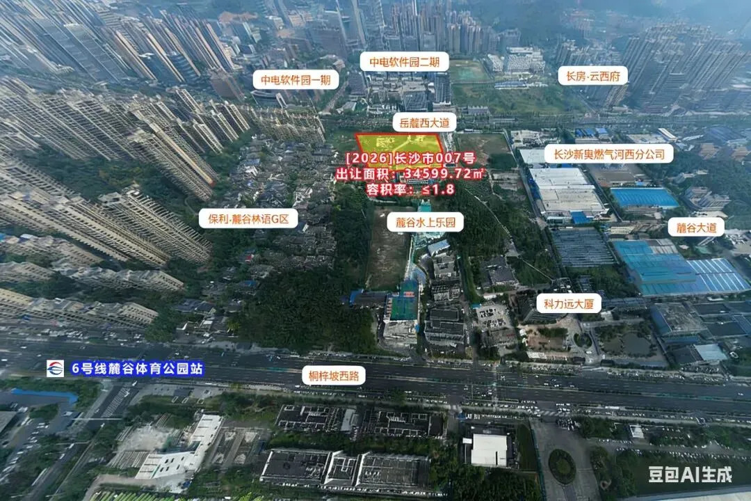 其中,【2026】长沙市007号地块位于岳麓区岳麓大道以南,紧邻麓谷体育公园和中电产业园,西靠保利麓谷林语,距离地铁6号线麓谷体育公园站约1公里。