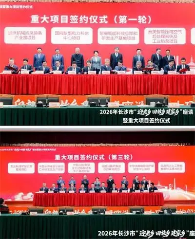 会议第二阶段是重大项目签约仪式。现场集中签约了18个覆盖先进制造、半导体、生物医药、数字经济、现代服务等多个关键领域的重大项目,总投资超260亿元;聘任了2名招商大使与8名招商顾问,组建了一个涵盖科创、创投、跨境经贸等多领域的“招商智囊团”,以拓宽招商引资渠道;市商务局发布了2026年第一批重点投资机会清单,147个项目总投资3583亿元,涵盖片区开发、基础设施建设、先进制造、科创研发、社会事业、现代服务业六大领域,为海内外投资者抛出“橄榄枝”。这些措施不仅为长沙注入了强劲动能,也展现了其致力于建设智能制造之城的决心,并为城市的产业升级与创新发展奠定了坚实基础。