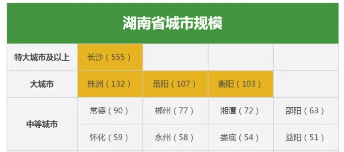 按照国务院规定的城市规模划分标准(城区人口超过500万人属于特大城市,100万-300万人属于Ⅱ型大城市),结合第七次全国人口普查结果,中央明确了湖南省的4座大城市: