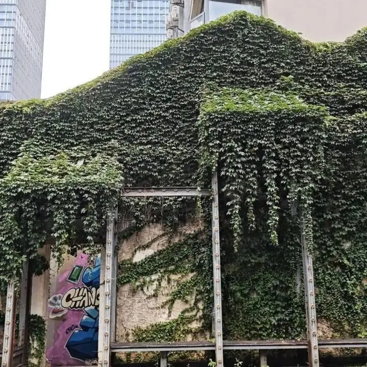 在爬满藤蔓的老建筑下喝咖啡