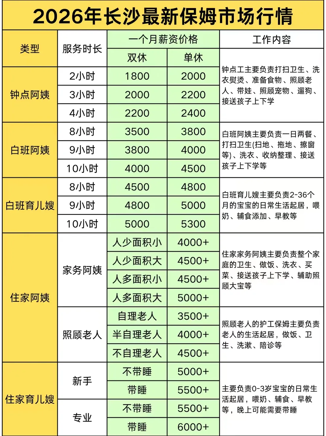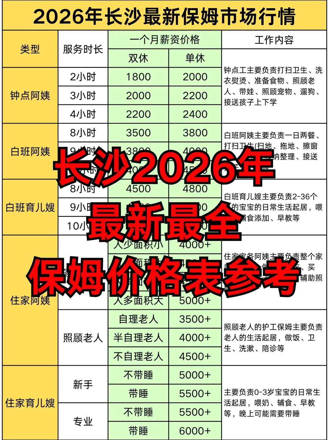 这绝对是准备请阿姨的家庭——尤其是常年用阿姨的宝妈——最关心的问题!为此,我们整理了一份 2026年长沙新手阿姨真实成交价格参考,数据来源于本月平台实际对接案例,比市面资深阿姨报价低约 300-800元,适合想找高性价比阿姨的家庭直接参考👇