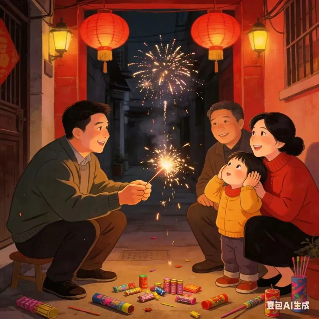 我愣了愣。原来在女儿眼里,那个想“放肆”放烟花的,不只是她们,还有三十年前弄堂里握着仙女棒的小女孩。烟花会散场,但那种渴望——对热闹的渴望,对传统的渴望,对年味的渴望——会在血脉里一代代传下去。