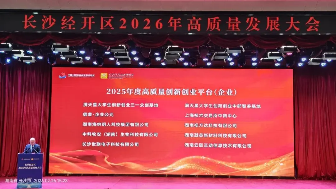 2月26日,长沙经开区召开2026年高质量发展大会。会上正式发布了“长沙经济技术开发区2025年度突出贡献企业、单位名单”及“长沙经济技术开发区2025年度联企稳企帮企工作金牌联络员名单”,对过去一年在园区建设“三个高地”先行区中作出卓越贡献的企业单位,以及在联企服务中作风扎实、成效突出的先进个人予以表彰,旨在凝聚奋进力量,大力弘扬企业家精神,为园区新一年高质量发展蓄势赋能、增添动能。