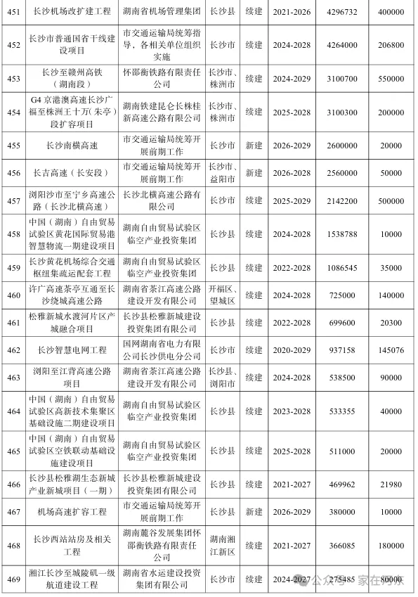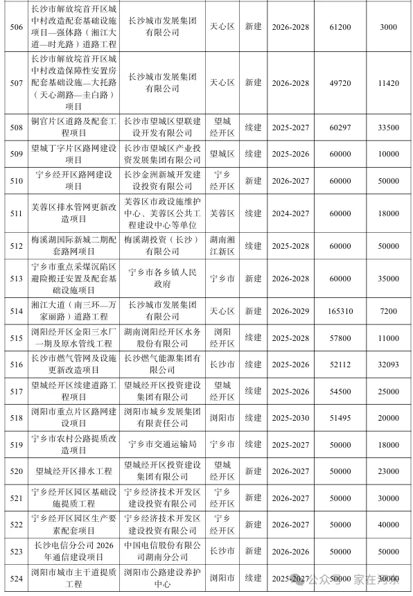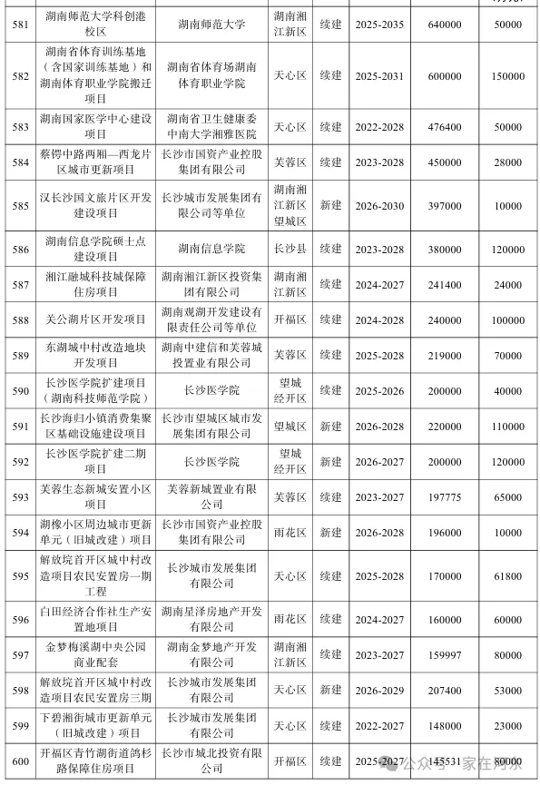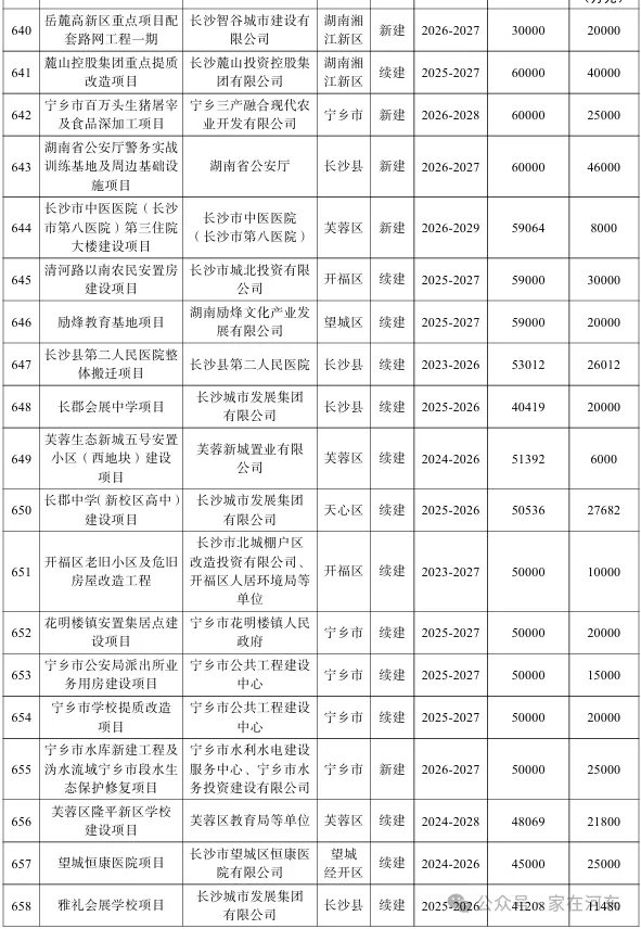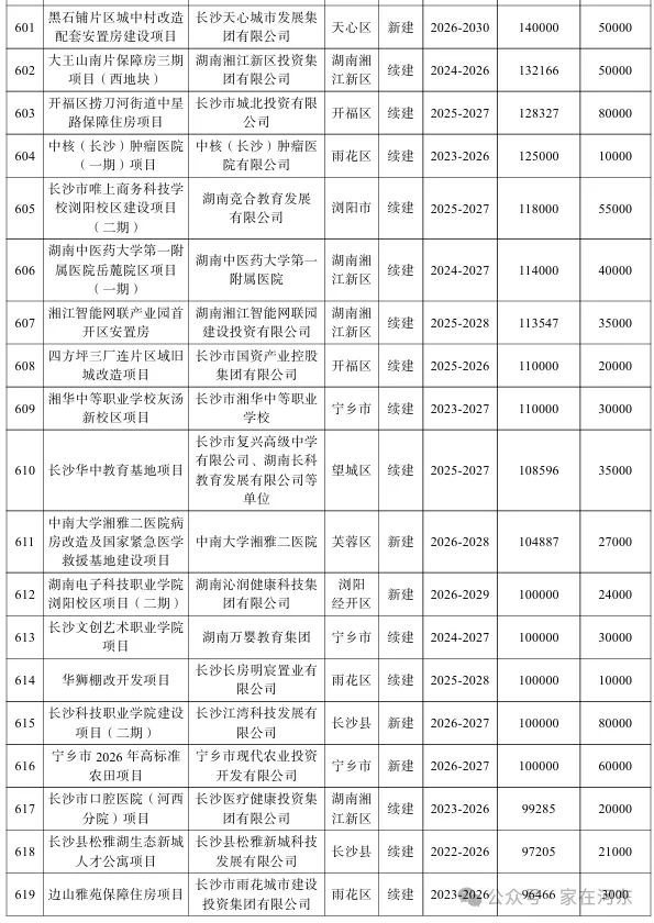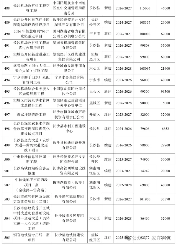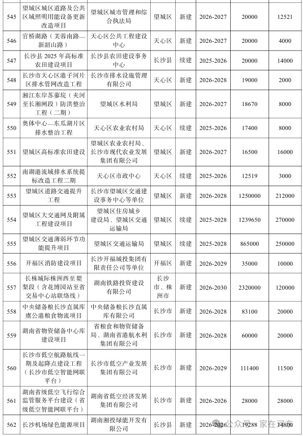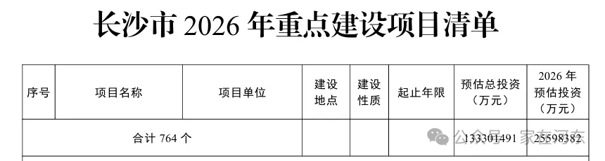 刚刚,长沙市2026年重点建设项目清单正式出炉:
