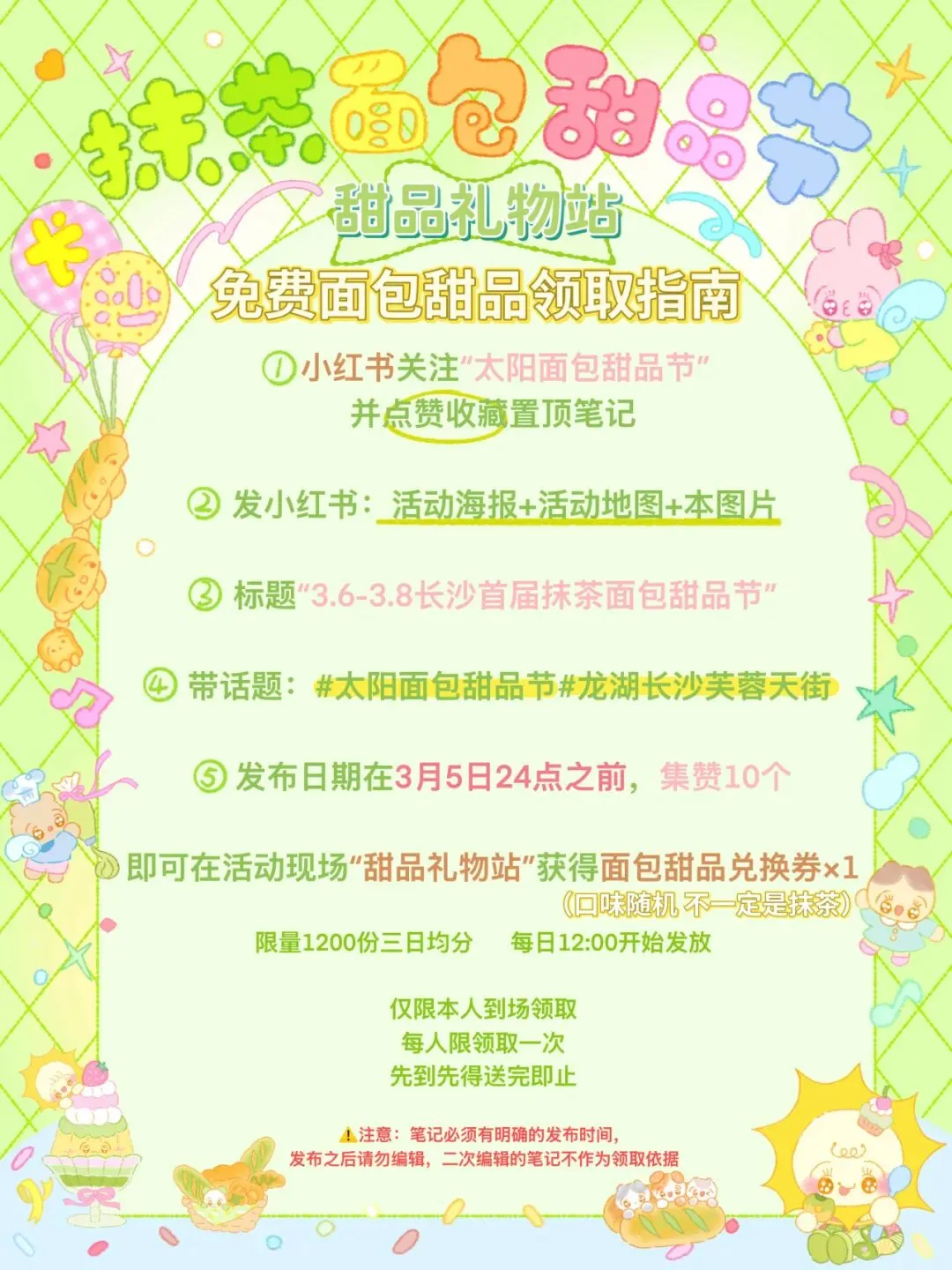 长沙首届抹茶面包甜品节!1200+面包免费送(转发有礼)