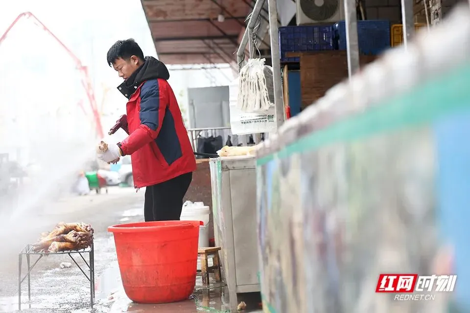 年味还没散尽,但陈洁的摊位前早已忙开了。一斤一两,肉块码上秤盘。新的一年,就在刀起刀落间开始了。