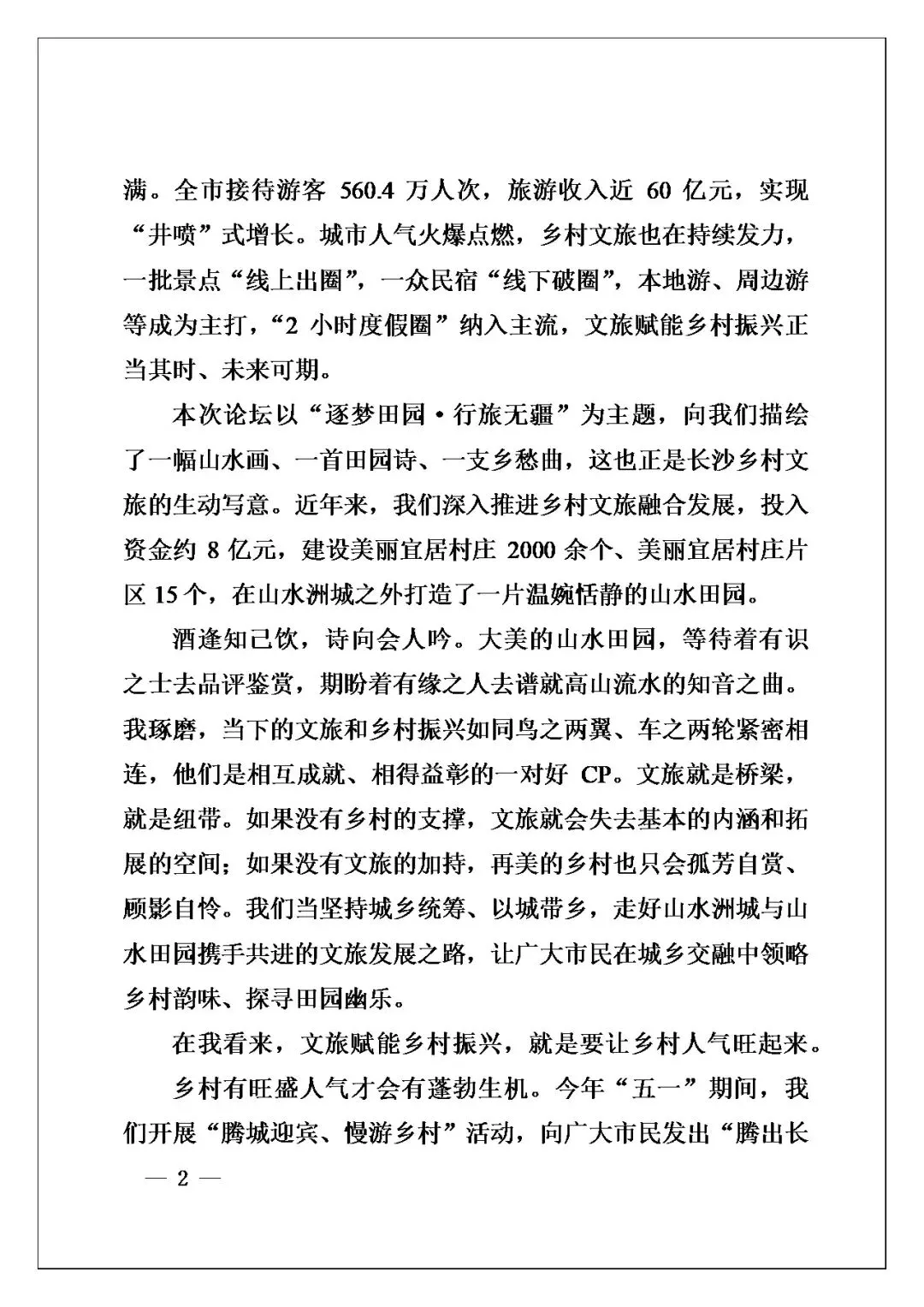 语言这块儿【划重点】特别讲究,有文气不飘。像文章中这样的比喻讲“酒逢知己饮,诗向会人吟”,用古人诗句来点题,自然地引出文旅和乡村振兴的关系,雅致贴切。有“让游客有好看的风景、好闻的芳香、好听的声音、好呷的蔬果、好讲的故事”,五个“好”排下来,节奏感强,听得人心里跟着亮堂起来。