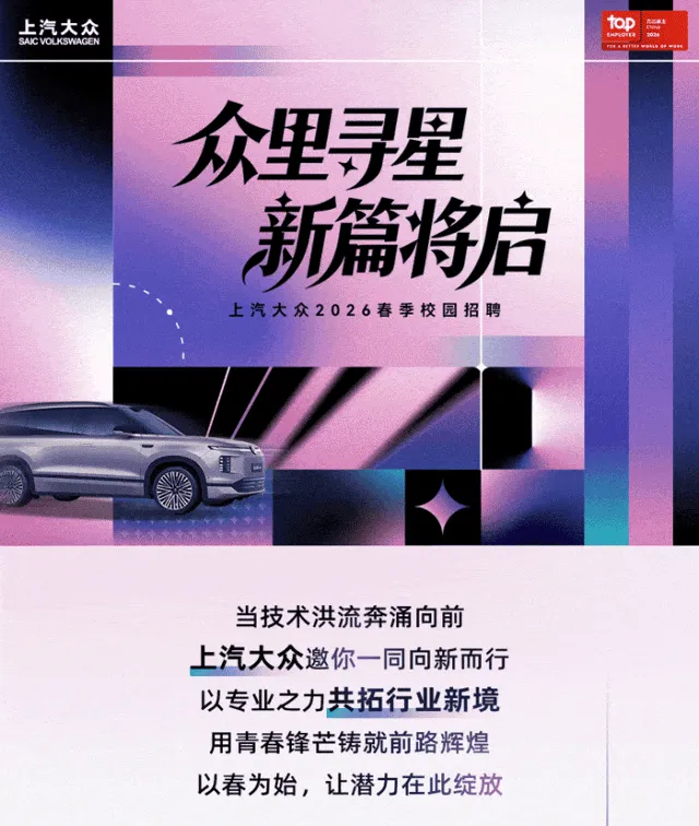 >【职等你来】|(上海长沙)上汽大众汽车有限公司2026校园招聘