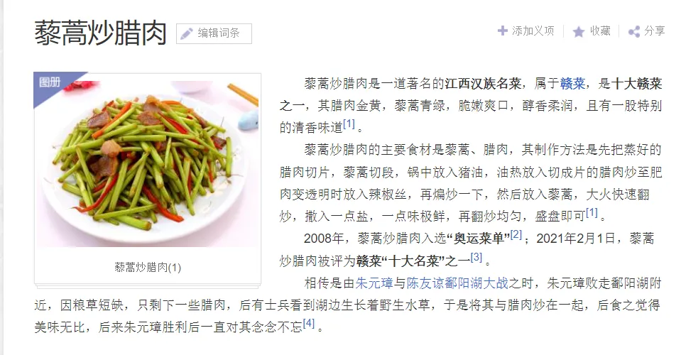 烟笋是真香,那种熏过又泡发的韧劲儿,嚼着有山林的味道。青豆鲜甜,一粒一粒,咬开来是春天的汁水。藜蒿长得像韭菜,我还特意百度了一下,原来是鄱阳湖边的野菜,有一道名菜就叫“藜蒿炒腊肉”,说是连我老朱家的皇帝都夸过。