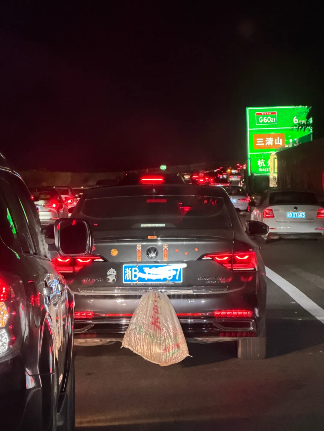 (这照片是不是最能诠释:车头是生活,车尾是故乡)到凌晨三点,车流终于开始松动。油门可以踩深一点了,速度能上到八十了。