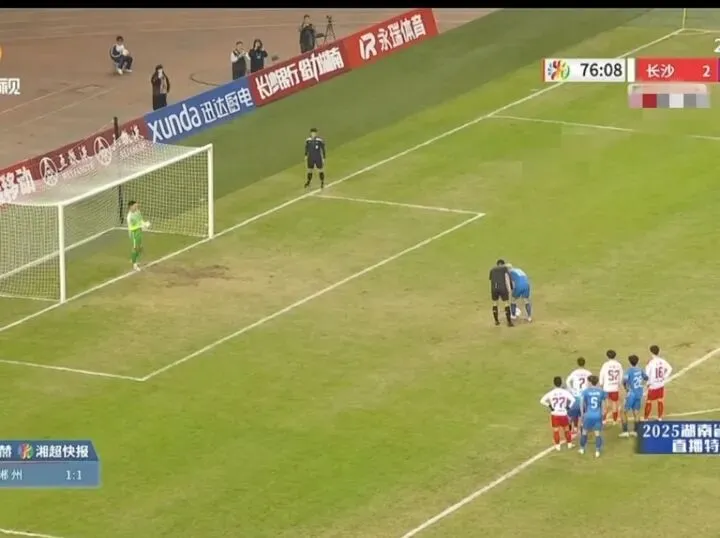 进攻的浪潮一浪高过一浪,转机再次出现:第75分钟,长沙门将邓子豪禁区内犯规,主裁判果断鸣哨,点球!