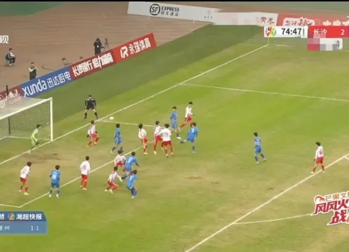 比赛中,岳阳队连续斩获5次角球,一次次将球吊入长沙队禁区,头球攻门、门前补射,队员们拼尽全力冲击球门,却始终未能攻破对手大门。