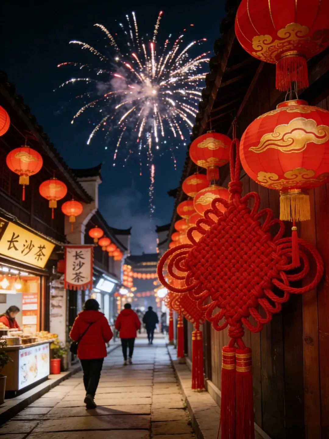 今年长沙的春节,红灯笼缀满街巷,中国结点亮枝头。从湘江两岸到岳麓山麓,从五一商圈到古镇老街,整座城市都披上了喜庆的红装,处处洋溢着团圆喜乐的氛围。