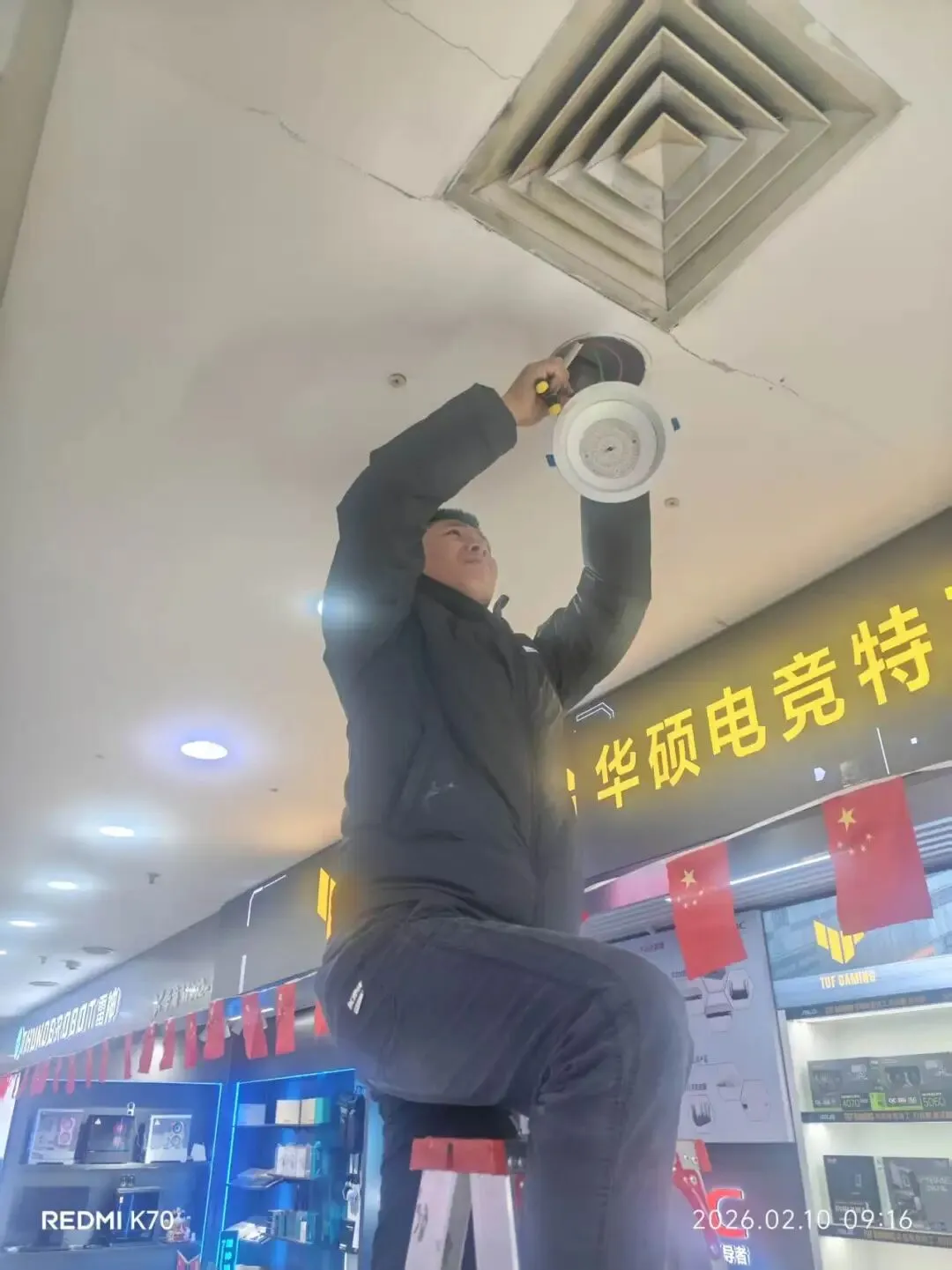 工程部全力做好硬件设施的日常维护与检修工作,如顶楼发光字维修、负一楼抽水泵疏通清理等,保障设施正常运营,筑牢保障防线。