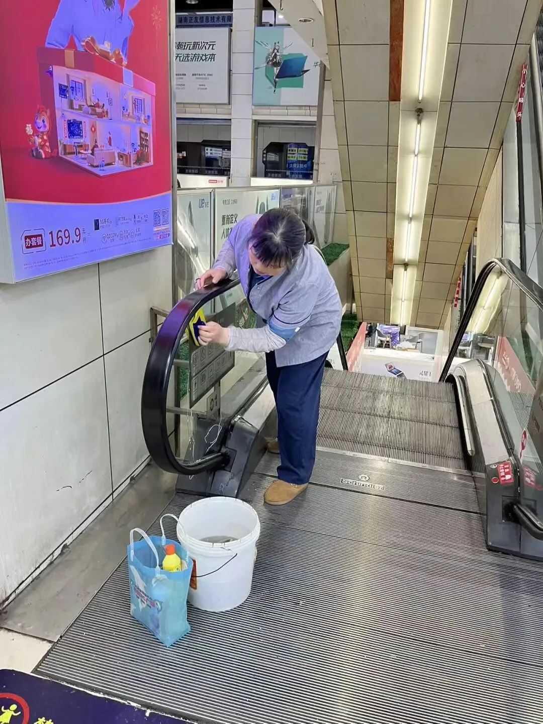 保洁同事全力开展节前大扫除工作,对公共区域、扶梯、卫生间等边角进行全面清洁,营造干净整洁、舒适舒心的节日氛围。
